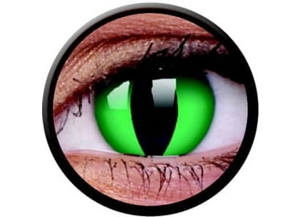 - Średnica: 14 mm – większa średnica pozwala na pełne pokrycie tęczówki, nadając oczom przerażający i realistyczny wygląd wężowych oczu.